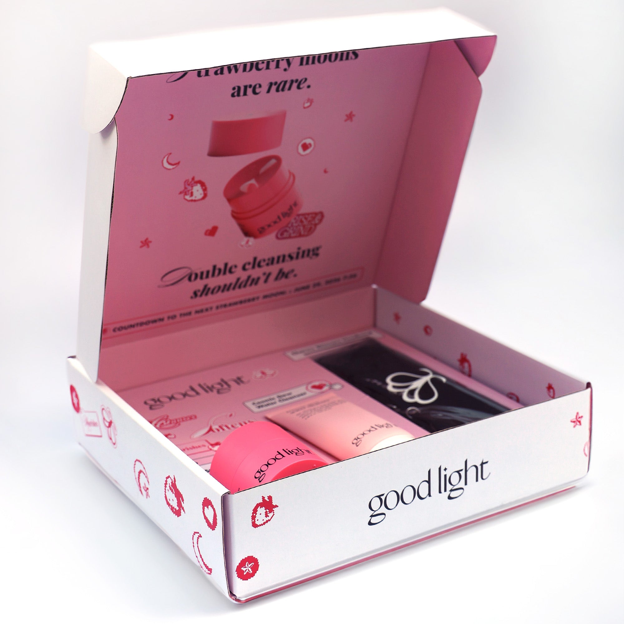 Meet the glow of the Strawberry Moon. This limited-edition set brings together our newest launch and best-selling essentials for the ultimate cleansing ritual — plus an exclusive good light collectible.